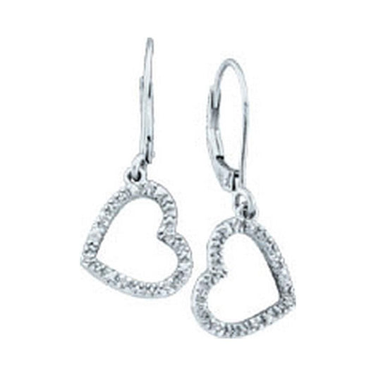 10kt White Gold Womens Round Diamond Heart Dangle Earrings 1/20 Cttw