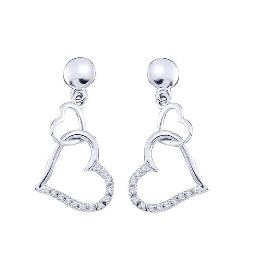 10kt White Gold Womens Round Diamond Linked Hearts Dangle Screwback Earrings 1/10 Cttw