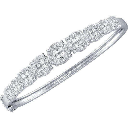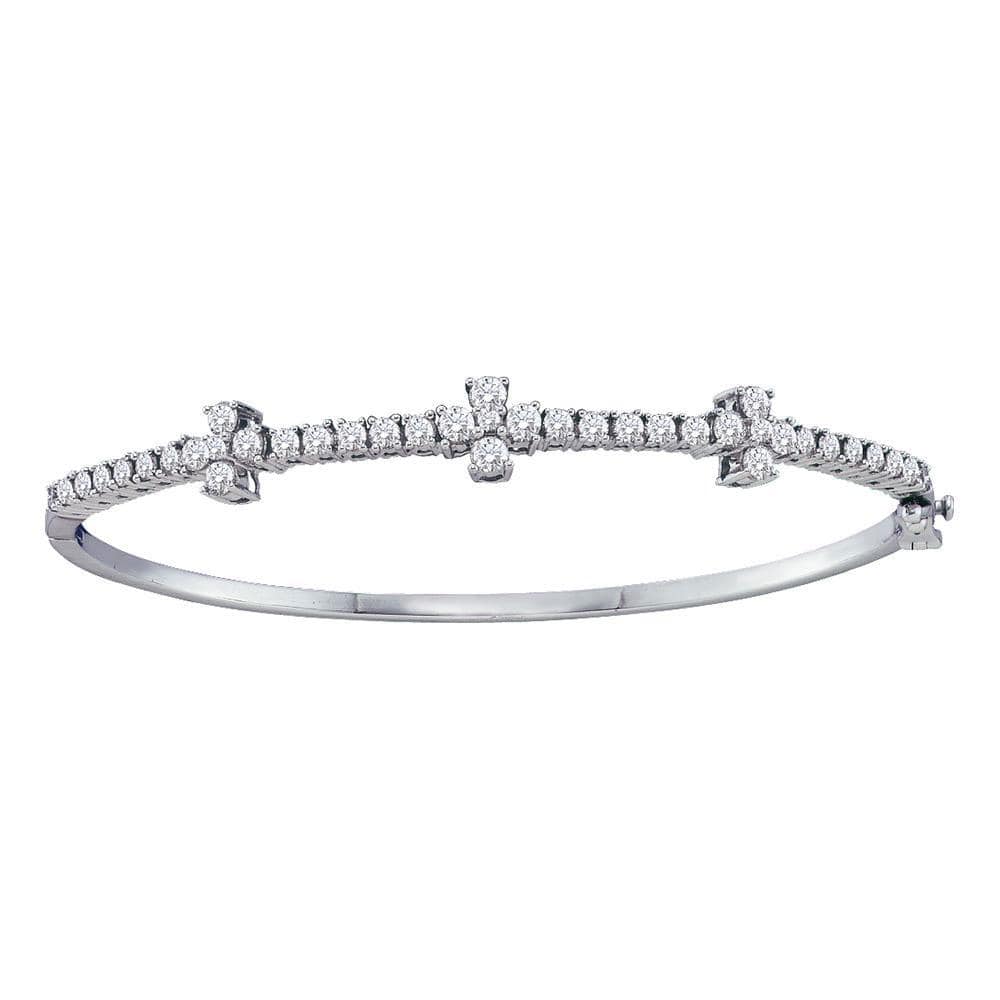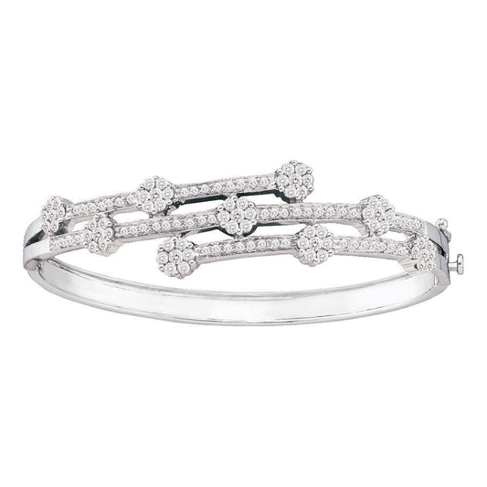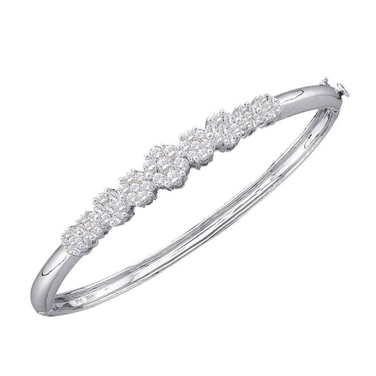 14K White Gold Womens Round Diamond Flower Cluster Bangle Bracelet 2-1/2 Cttw