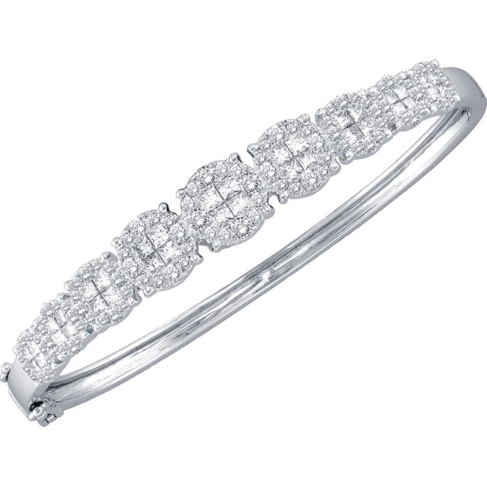 14K White Gold Womens Princess Round Diamond Soleil Bangle Bracelet 3.00 Cttw