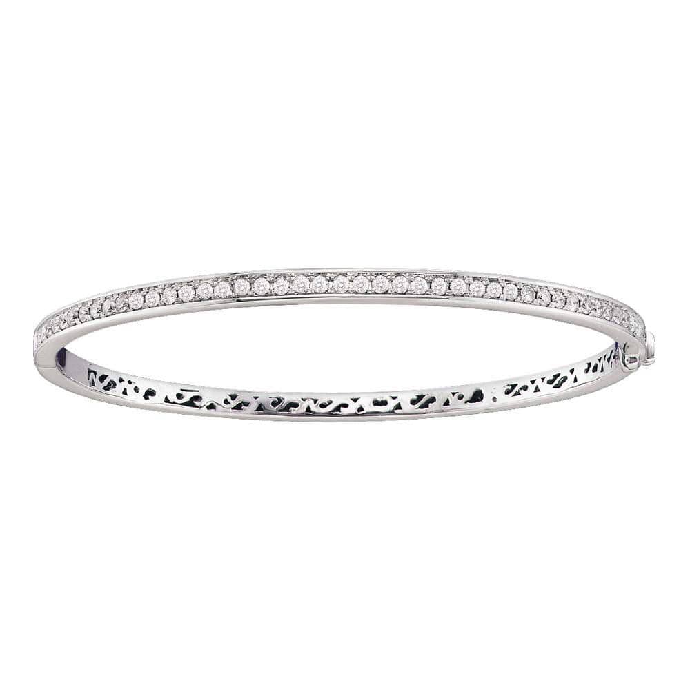 14K White Gold Womens Round Diamond Classic Single Row Bangle Bracelet 1.00 Cttw