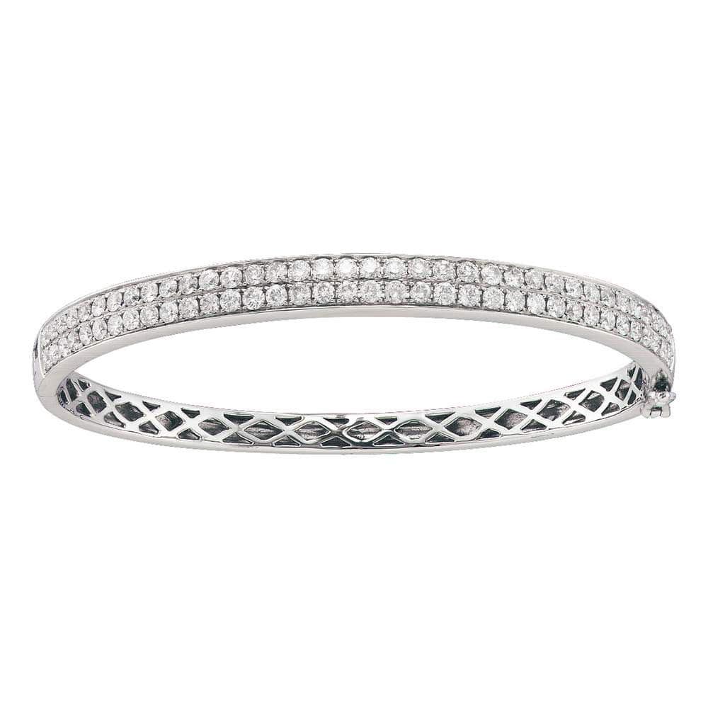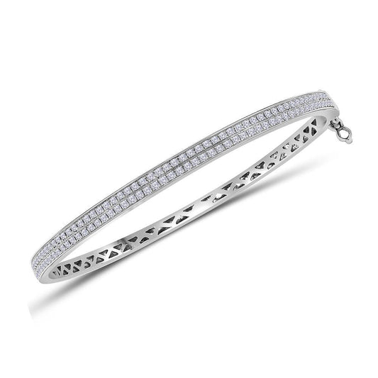 14K White Gold Womens Round Diamond Classic Double Row Bangle Bracelet 2.00 Cttw