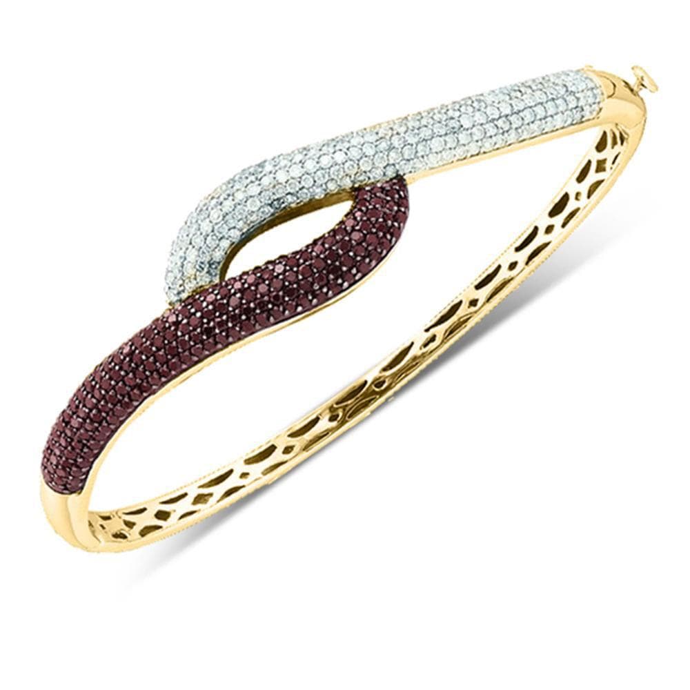 14K Yellow Gold Womens Round Black Color Enhanced Diamond Bangle Bracelet 1-3/4 Cttw