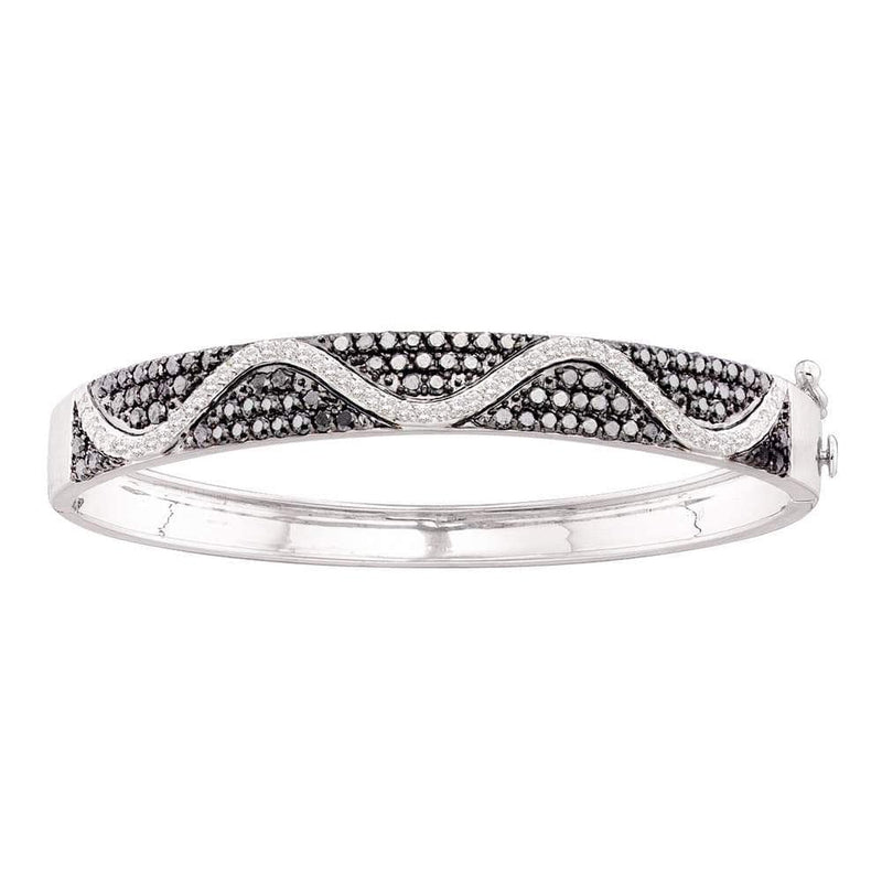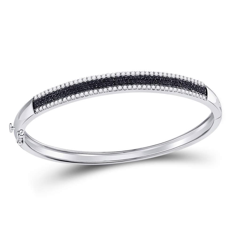 14K White Gold Womens Round Black Color Enhanced Pave-set Diamond Bangle Bracelet 1-3/8 Cttw
