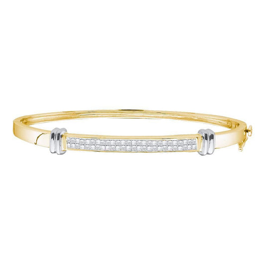 14K Two-tone Yellow Gold Womens Princess Diamond Bangle Bracelet 1.00 Cttw