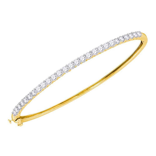 14K Yellow Gold Womens Round Diamond Single Row Bangle Bracelet 2.00 Cttw