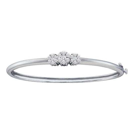 14K White Gold Womens Round Diamond Triple Flower Cluster Bangle Bracelet 1/2 Cttw