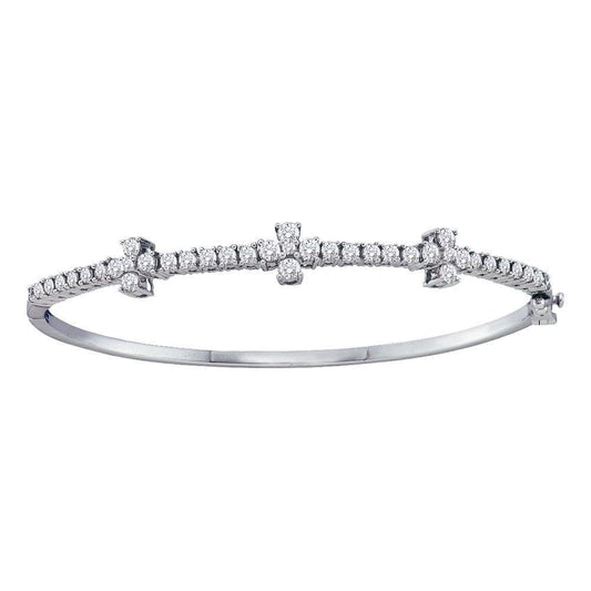 14K White Gold Womens Round Diamond Flower Cluster Bangle Bracelet 1.00 Cttw