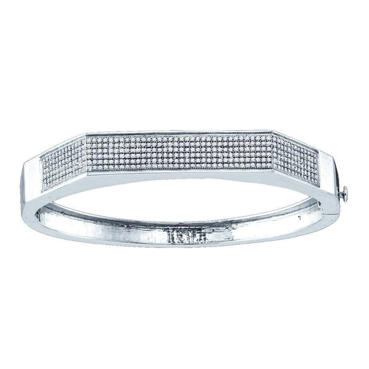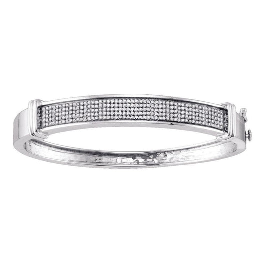 Sterling Silver Womens Round Diamond Triple Row Bangle Bracelet 1-1/3 Cttw