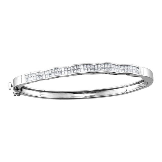 14K White Gold Womens Princess Diamond Double Row Wave Bangle Bracelet 2.00 Cttw
