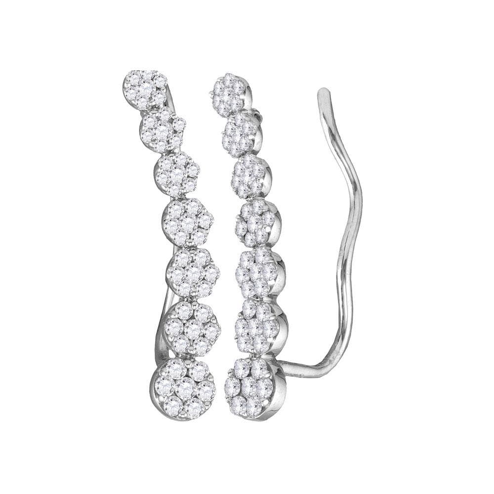 10kt White Gold Womens Round Diamond Cluster Climber Earrings 1/2 Cttw. | Combined diamond weight of 1/2 carats total weight represents a range of 0.46 - 0.57 cts. t.w.