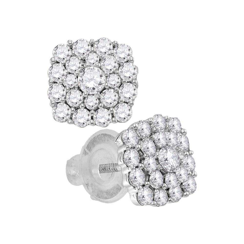 14kt White Gold Womens Round Diamond Cluster Earrings 1.00 Cttw. | Combined diamond weight of 1.00 carats total weight represents a range of 0.95 - 1.17 cts. t.w.