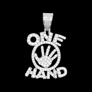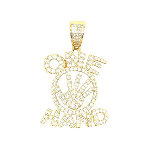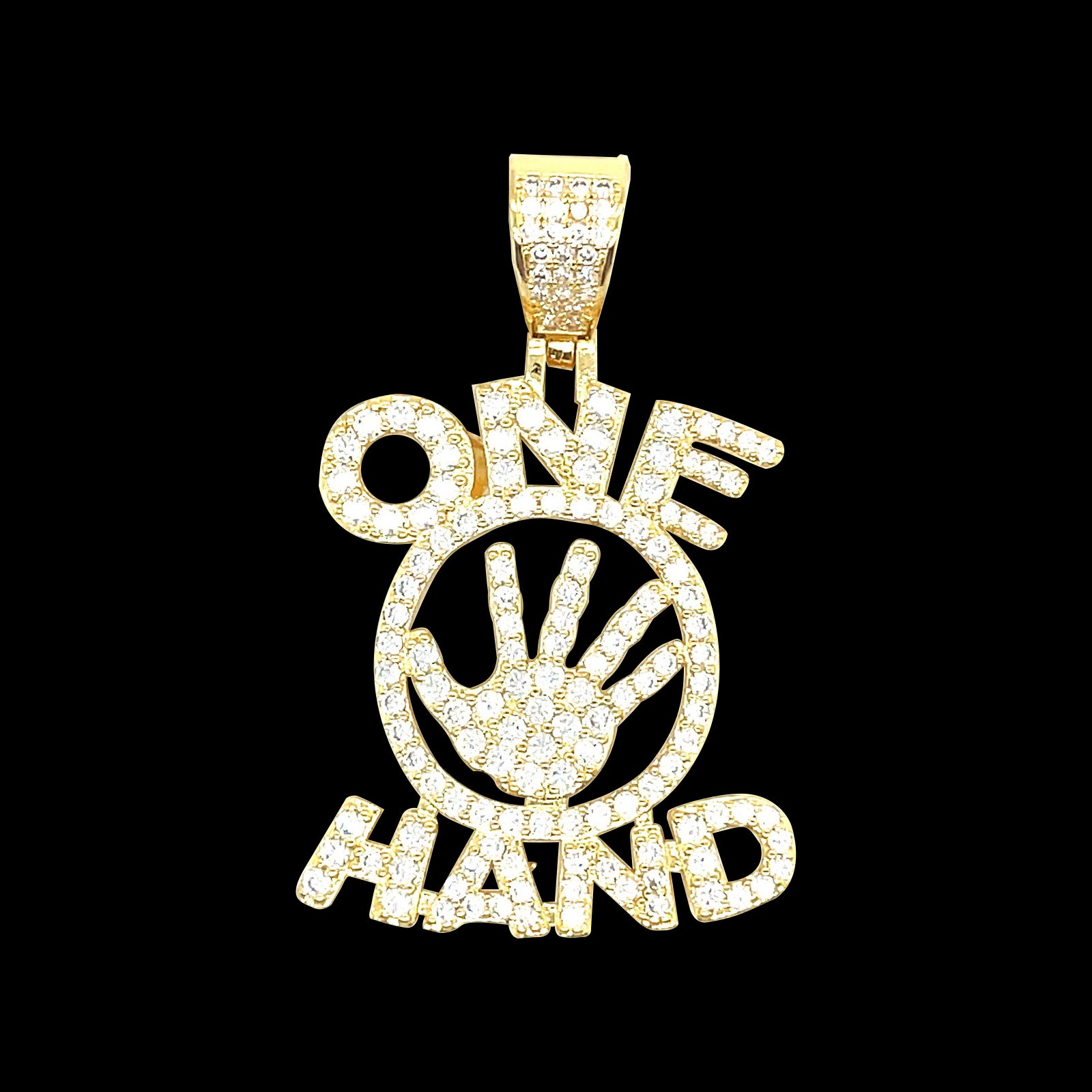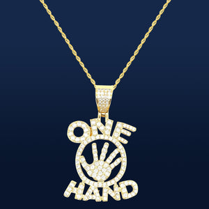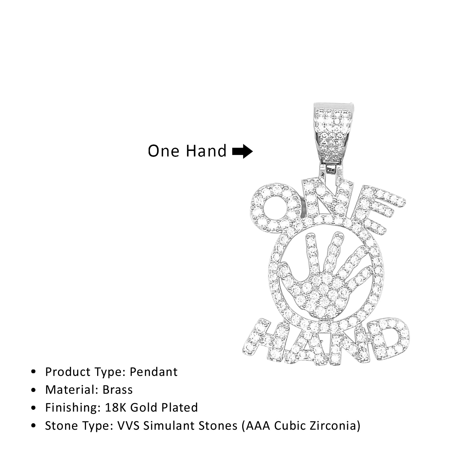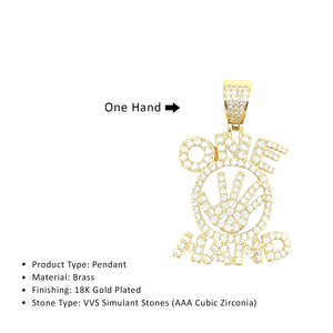 Make a bold statement with this 18K gold plated brass one hand pendant. The detailed hip hop hand design pops against the shiny, luxurious plating. Measures 1.5" wide x 2" long on an 18" chain for perfect hip-hop flair. Add an urban edge to your style with this eye-catching pendant. 18K gold plating elevates the look of this streetwise piece—an excellent hip-hop jewelry gift idea.
