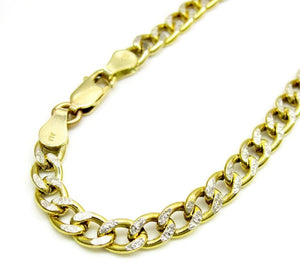 4.5MM 10K Yellow Gold Pave Cuban Chain Necklace