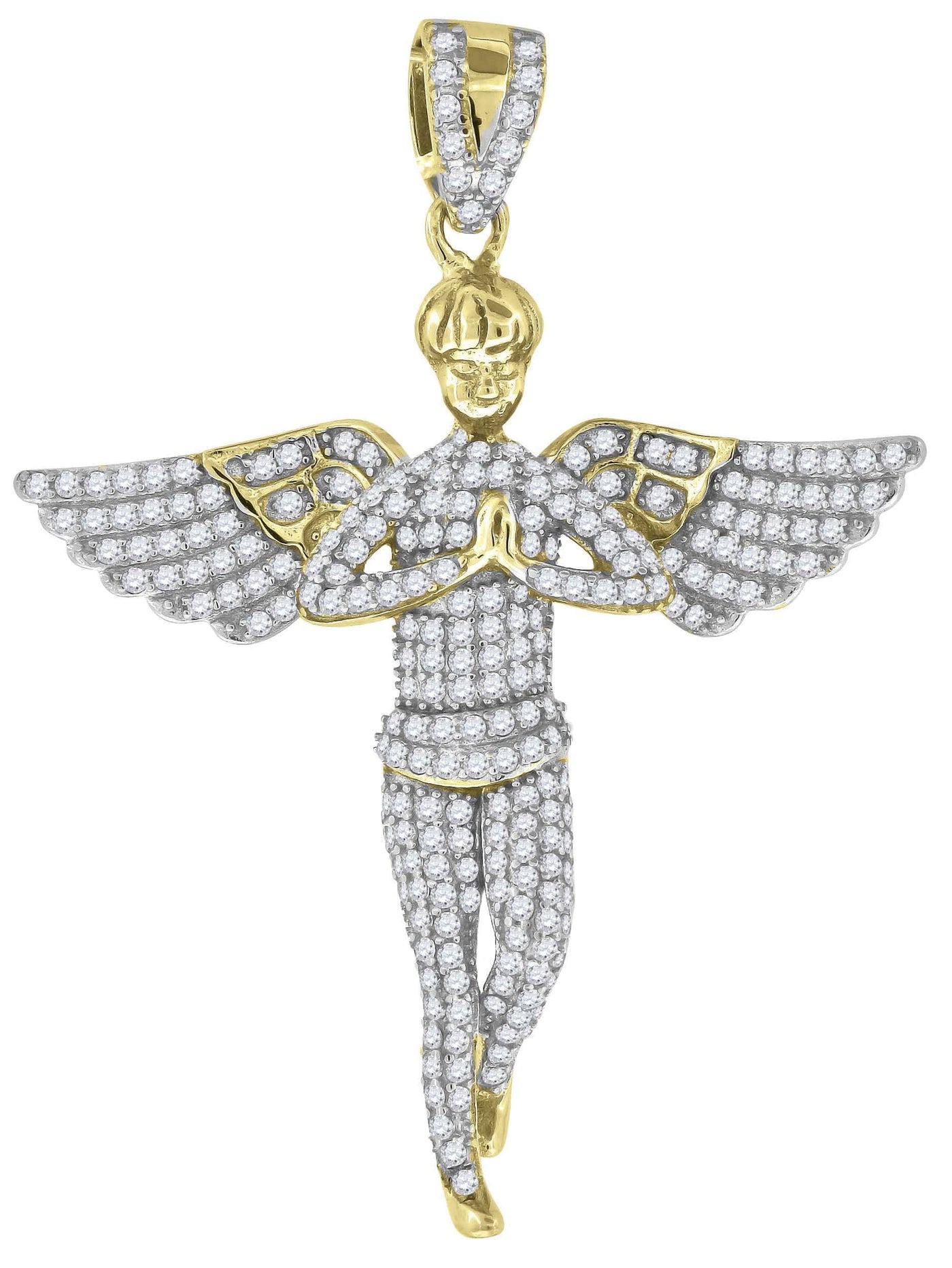 925 Sterling Silver Yellow-tone Cubic Zirconia CZ Angel Unisex Pendant Charm.