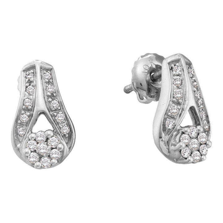 14kt White Gold Womens Round Diamond Flower Cluster Teardrop Earrings 1/4 Cttw. | Combined diamond weight of 1/4 carats total weight represents a range of 0.23 - 0.28 cts. t.w. | Stone 2: Diamond; 1/20 ct.t.w.; I-J color; I2-I3 clarity; Prong setting; Treatment - Not-treated
